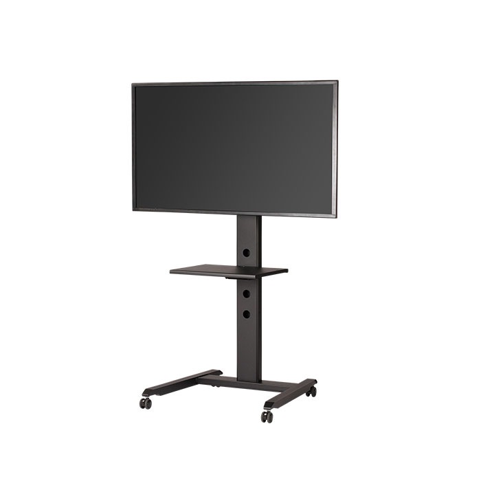会議テーブルの高さ(H700ミリ)にジャストフィットした移動式テレビスタンド 少し小振りなテレビスタンドです。 少人数でのテレビ会議やミーティング時に使い勝手のよい、省スペース設計で足元もスッキリしています。