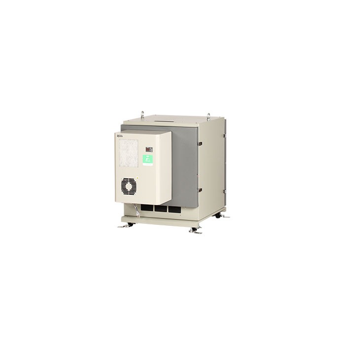 いろいろな用途で活用いただける多様性モデル。 高さ800mmの防塵ラックです。背面扉に500W級のノンフロン・ノンドレンタイプのクーラーを搭載し、ラック内を強制冷却します。