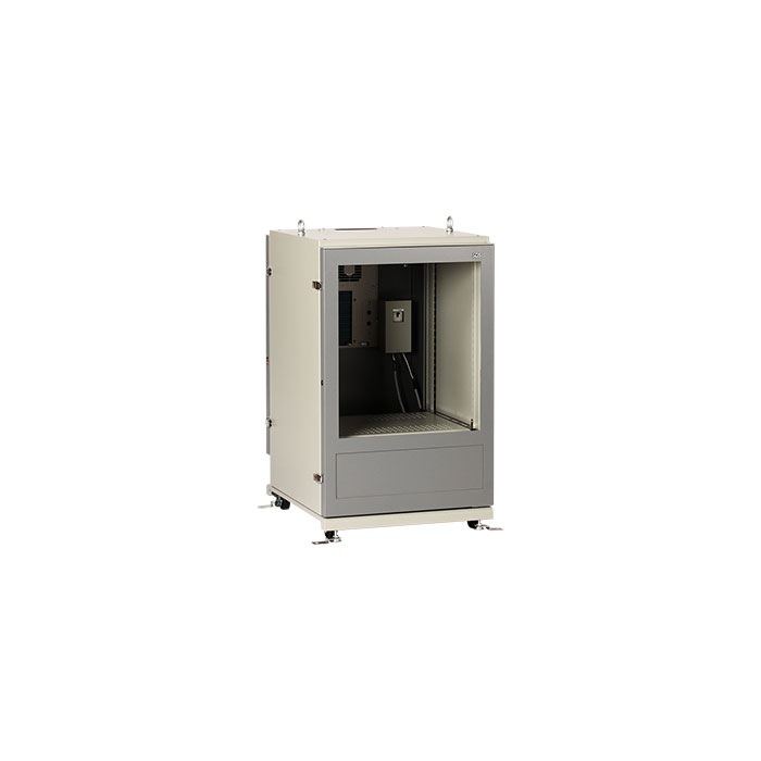 いろいろな用途で活用いただける多様性モデル。 高さ1000mmの防塵ラックです。背面扉に500W級のノンフロン・ノンドレンタイプのクーラーを搭載し、ラック内を強制冷却します。