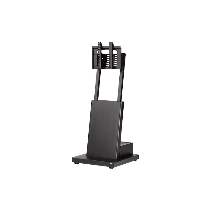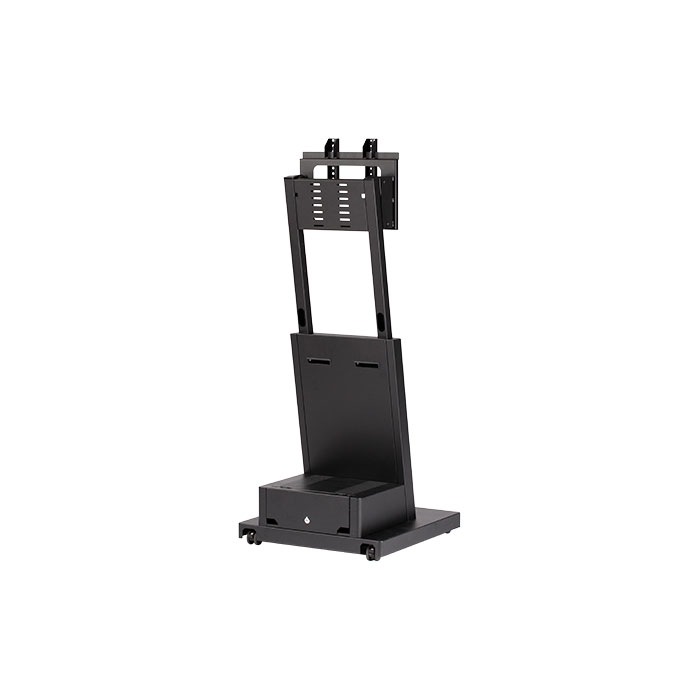 耐荷重15Kg 32インチ~42インチ相当に対応したデジタルサイネージ用スタンドフルスペックタイプ。 フルスペックタイプは、ミニマムタイプにフレームカバーとSTBや再生レコーダー等が収納できる機器収納ボックスを装備。