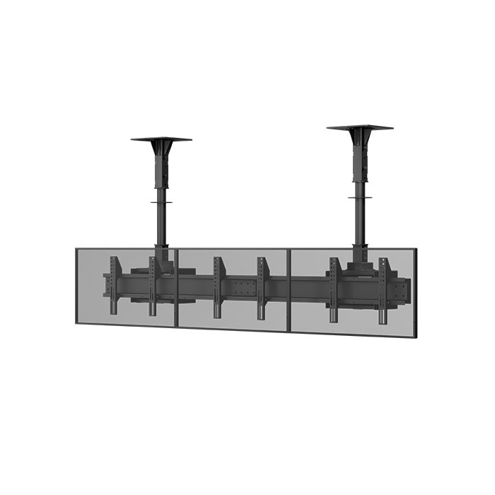 32インチのディスプレイを3台連結して天吊りすることができます。 取り付けには別途ポールが必要になります。
